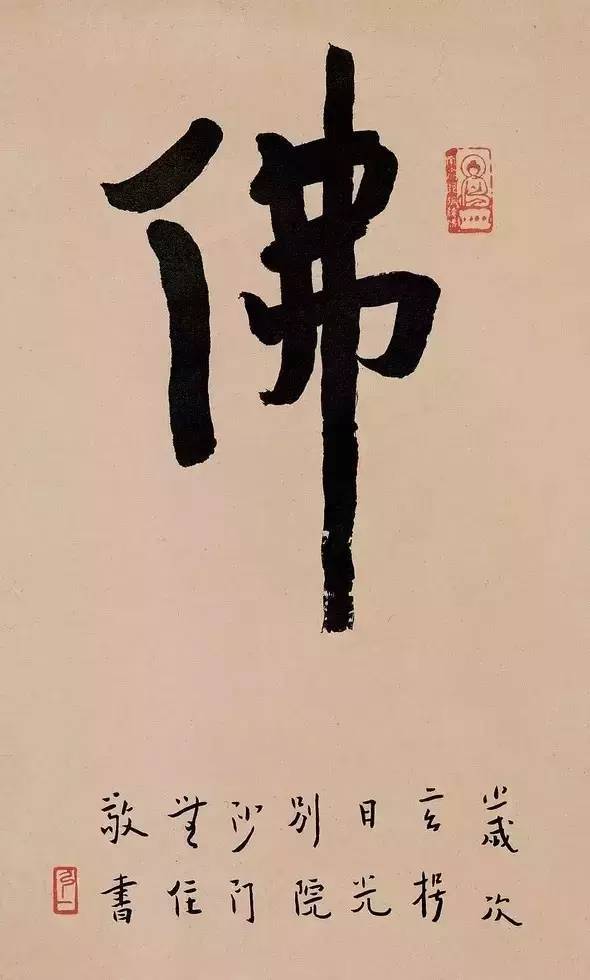 我虽用三层楼为比喻,但并非必须从第一层到第二层,然后得到第三层。有很多人,从第一层直上第三层,并不需要在第二层勾留。还有许多人连第一层也不住,一口气跑上三层楼。不过我们的弘一法师,是一层一层的走上去的。弘一法师的“人生欲”非常之强!他的做人,一定要做得彻底。他早年对母尽孝,对妻子尽爱,安住在第一层楼中。中年专心研究艺术,发挥多方面的天才,便是迁居在二层楼了。强大的“人生欲”不能使他满足于二层楼,于是爬上三层楼去,做和尚,修净土,研戒律,这是当然的事,毫不足怪的。做人好比喝酒;酒量小的,喝一杯花雕酒已经醉了,酒量大的,喝花雕嫌淡,必须喝高粱酒才能过瘾。文艺好比是花雕,宗教好比是高梁。弘一法师酒量很大,喝花雕不能过瘾,必须喝高粱。我酒量很小,只能喝花雕,难得喝一口高梁而已。但喝花雕的人,颇能理解喝高梁者的心。故我对于弘一法师的由艺术升华到宗教,一向认为当然,毫不足怪的。艺术的最高点与宗教相接近。二层楼的扶梯的最后顶点就是三层楼,所以弘一法师由艺术升华到宗教,是必然的事。