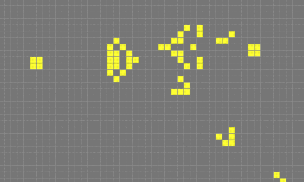 在这个游戏中,还可以设定一些更加复杂的规则,例如当前方格的状况不仅由父一代决定,而且还考虑祖父一代的情况。玩家还可以作为这个世界的“上帝”,随意设定某个方格细胞的死活,以观察对世界的影响。