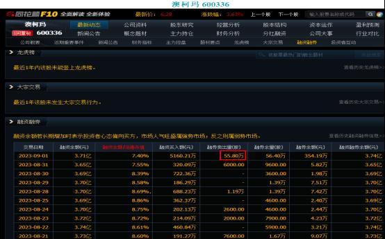 打开澳柯玛的融资融券,就可以看到当日融券卖出了55万股!可以对比前些天的融券卖出量,当日的融券卖出量是非常高的